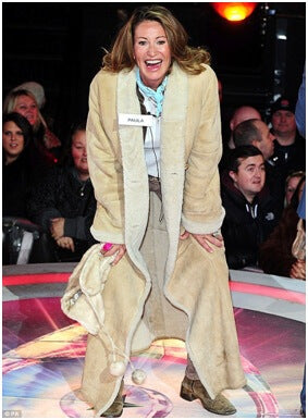 First lady in the house was former model and fling of Simon Cowell, Paula Hamilton (51), who was greeted by loud boos. She said, ‘I had an extremely glamorous and very privileged lifestyle. I found fashion shows in Paris quite exhausting, though. Bad habits in the house? I think I might snore, I’ve been single for so long I don’t know.’ However, no traces of her glamorous lifestyle were evident in her fashion choices for the evening.