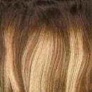 Our warm and sweet Chestnut Honey Balayage is made of a deep, rich chocolate brunette root fading into chestnut and honey tones. This natural looking shade will fit any deep-toned brunette wanting to add highlights without using dye, or to add volume and length that matches their current colour. This colour is made from our Medium/Chocolate Brown (#4), Light/Chestnut Brown (#6) and Strawberry Blonde (#27).
