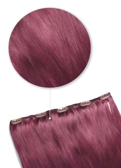 One piece clip in hair extension in Plum/Cherry Red (#530). The fastest way to extend your hair