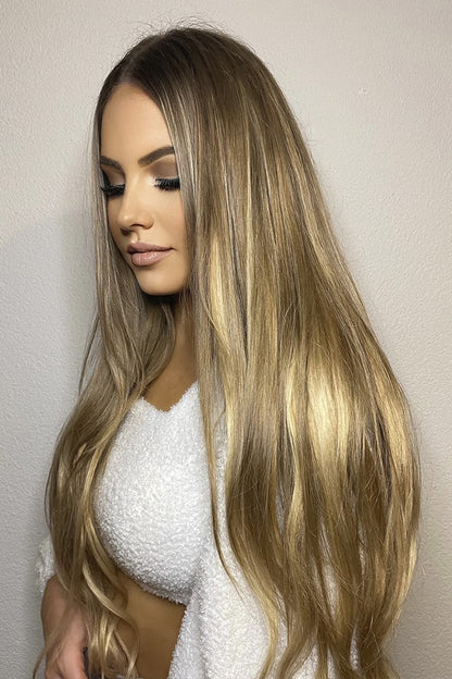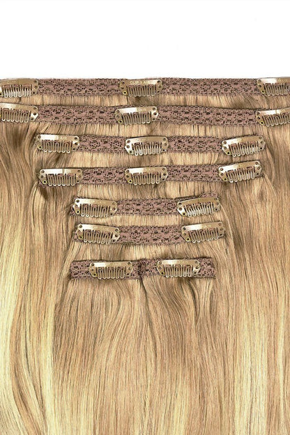 Double Wefted Full Head Biscuit Blondey Balayage Clip i Hair Extensions