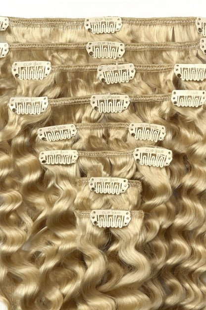 Curly Full Head Remy Clip i Human Hair Extensions – Lys Ash Blond (#22)
