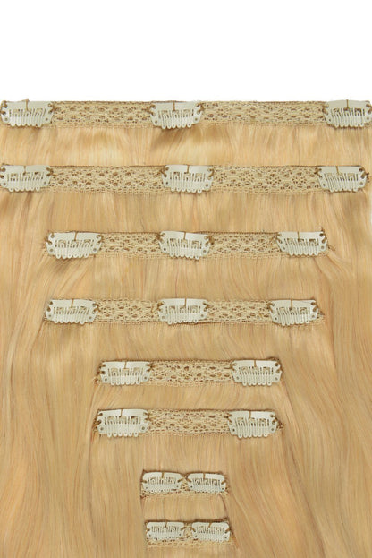 Double Wefted Full Head Remy Clip i Human Hair Extensions – Lys Ash Blond (#22)
