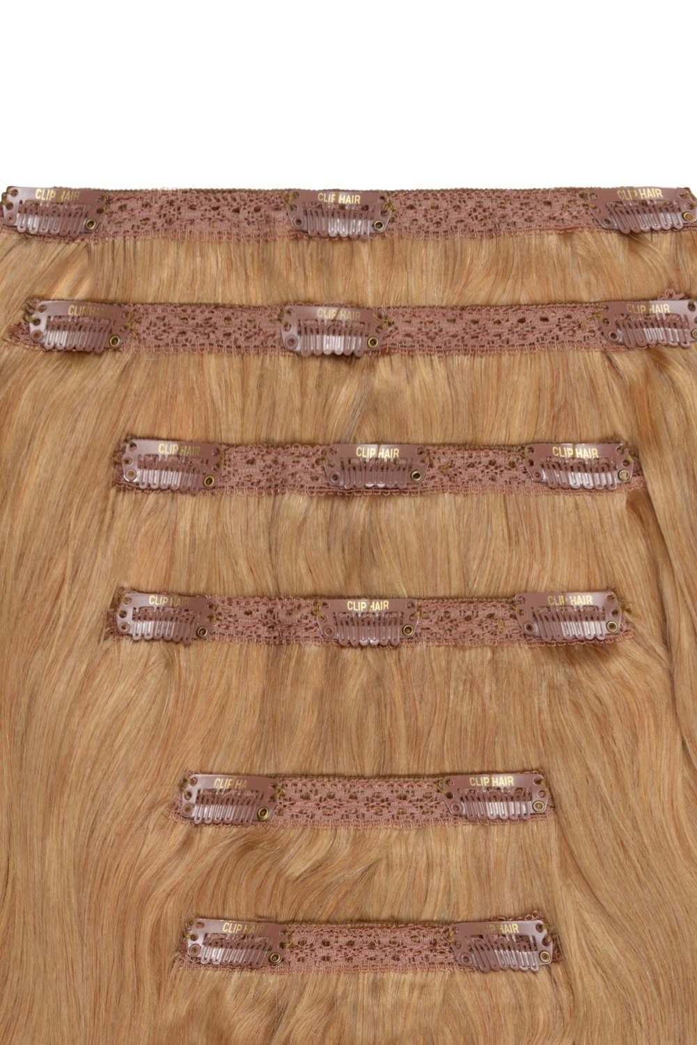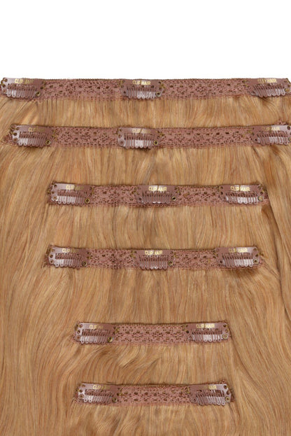 Jordbær/ingefærblond (#27) Dobbeltveftet helhodeklips i hårforlengelser