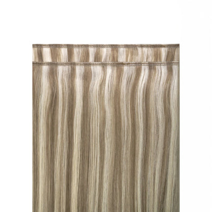Din standardinnslag, nå forbedret for en enda mer diskret, sømløs og naturlig finish. Samme raske påføring og volumøse resultater, men med en mindre skjør, mindre søm som tilsvarer mindre avfall, mindre sammenfiltring, lengre varige hårforlengelser. Laget av AAAAA-kvalitet, dobbelttrukket, toppkvalitet, Remy menneskehår, kan flatveften gjenbrukes igjen og igjen, noe som gjør det til en av de mest kostnadseffektive hårforlengelsesmetodene.