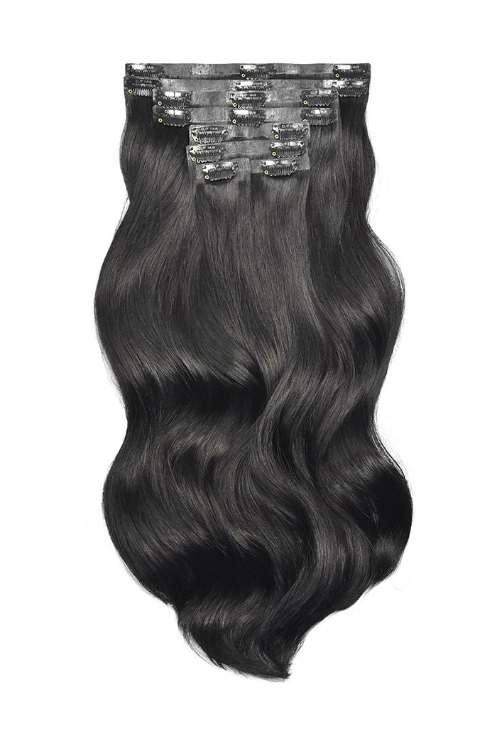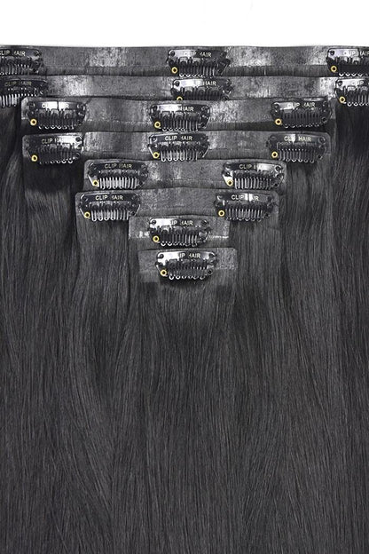 Jet Black (#1) Double Drawn Seamless Clip In Hair Extensions