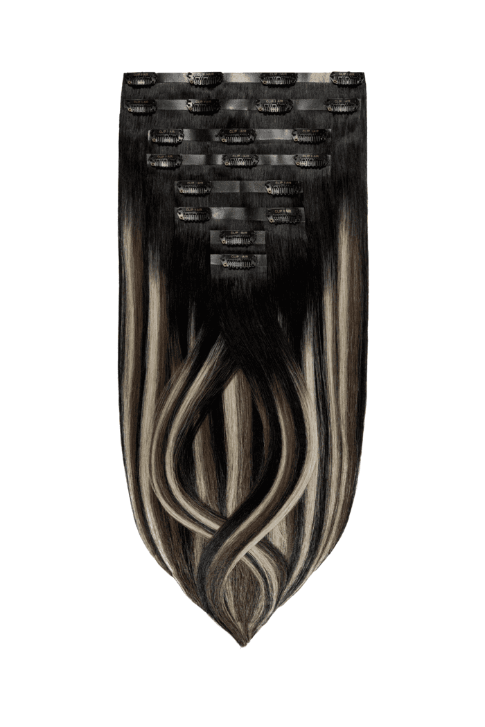 Silver Shadow Balayage Double Drawn Seamless Clip In Hair Extensions