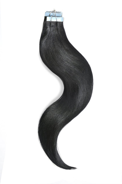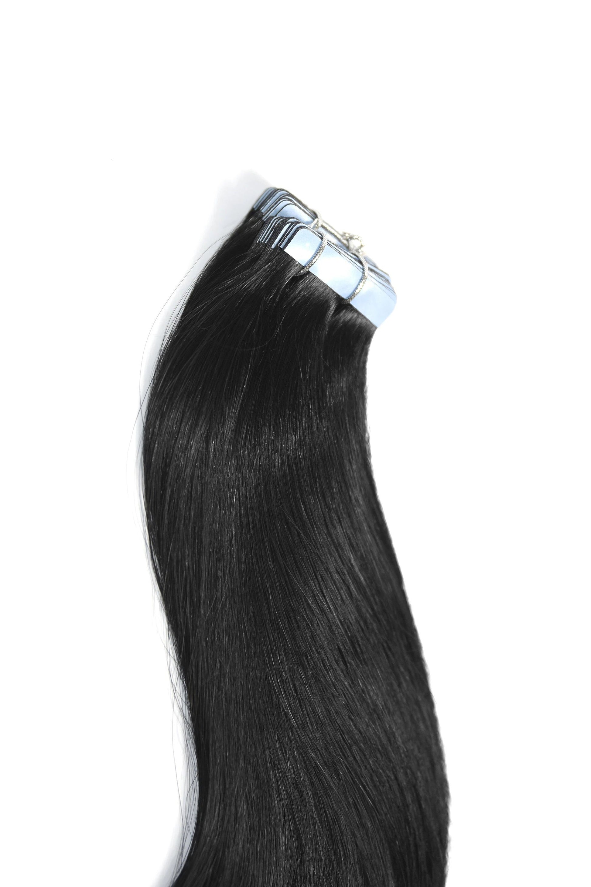 Våre deilige mørke Jet Black Tape In Hair Extensions er laget med silkemykt menneskehår, noe som gjør dem enkle å vaske og style, og unngår sammenfiltring og mattering.