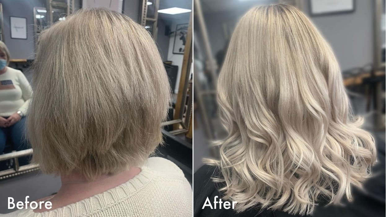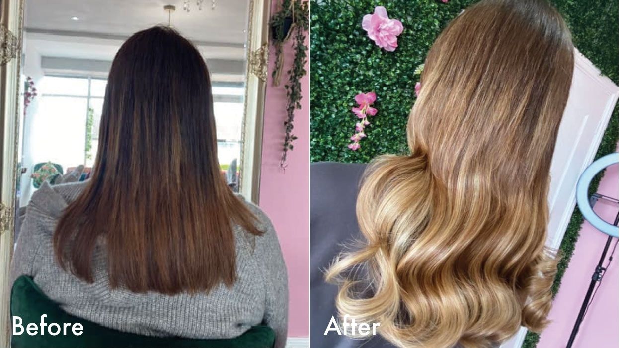 In the before and after above, the gifted @haironpointltd used a mix of colours of 16” Tape-In Extensions to boost the volume and add a couple of inches of length to this style. Get the look here.
