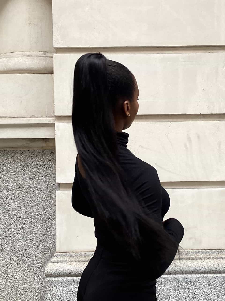Our Classic mid length 20 inch Straight Up Ponytail extension couldn’t be easier to apply, just follow these simple steps:
