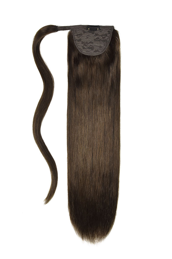 Our longest length ponytail extension, the 24 inch Wrap Around Mega gives you the full celebrity standard package. This luscious remy human hair pony can be worn sleek straight, or as a high/side/low curl to create the perfect curls or plait.