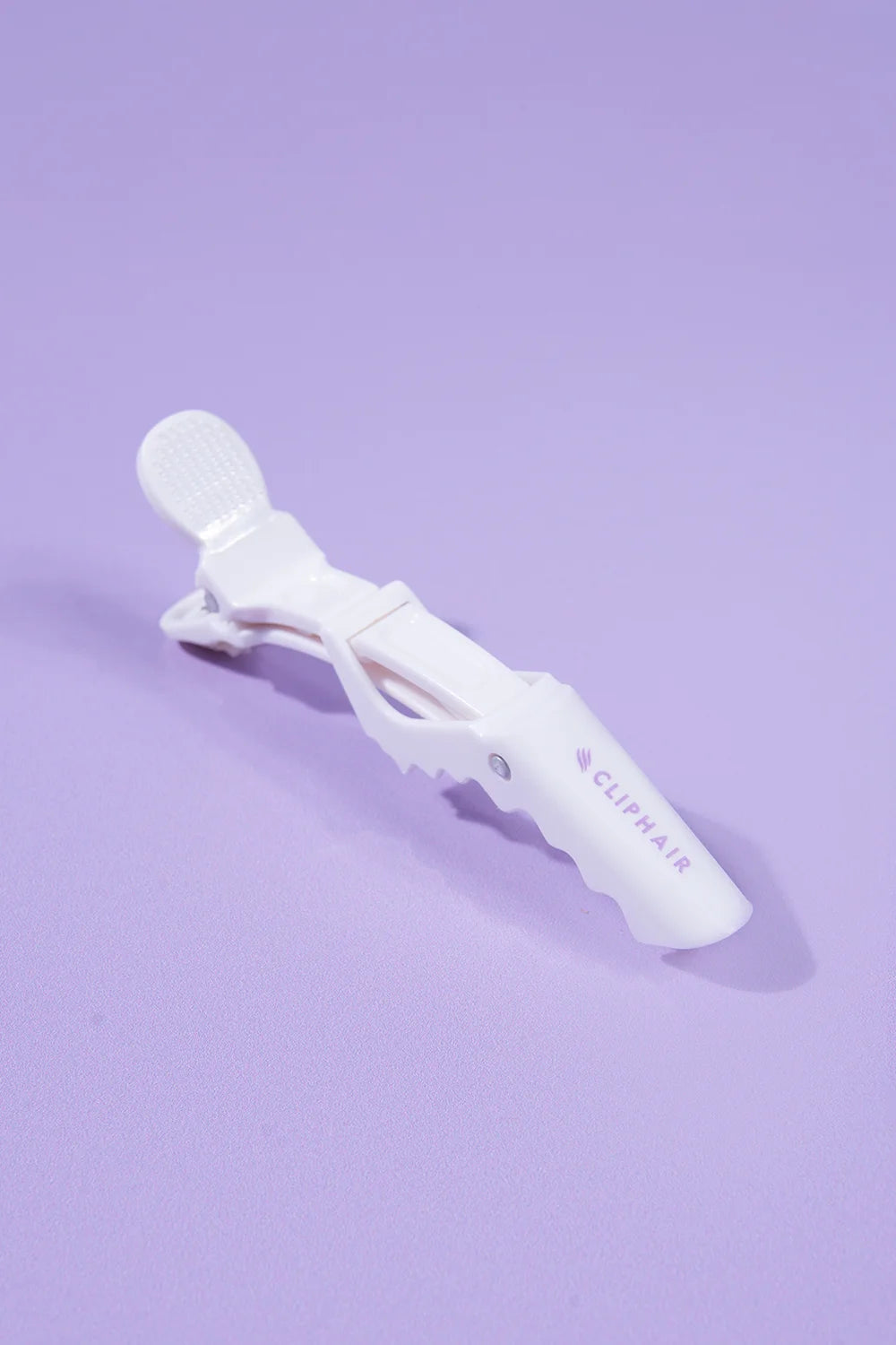 Alligator clips are a sectioning device used for hair styling and maintenance. They work to section hair neatly and keep it securely out of the way to allow you to work on specific areas cleanly and quickly without interference from the rest of the hair.