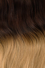 Double Wefted Full Head Remy Clip in Human Hair Extensions - Chocolate Honey Ombre (#T4/27)