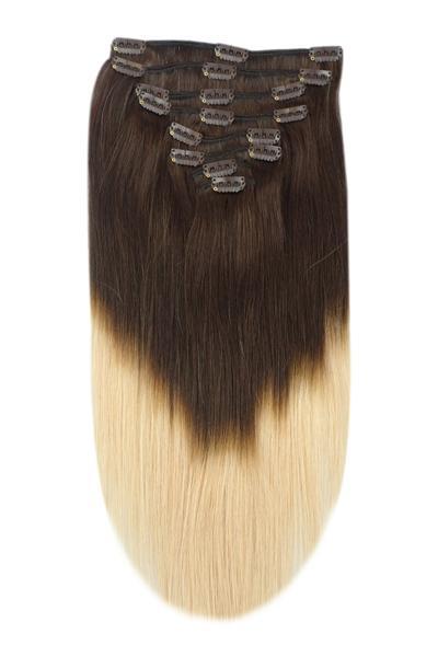 Double Wefted Full Head Remy Clip in Human Hair Extensions - Espresso Honey Ombre (#T2/27)