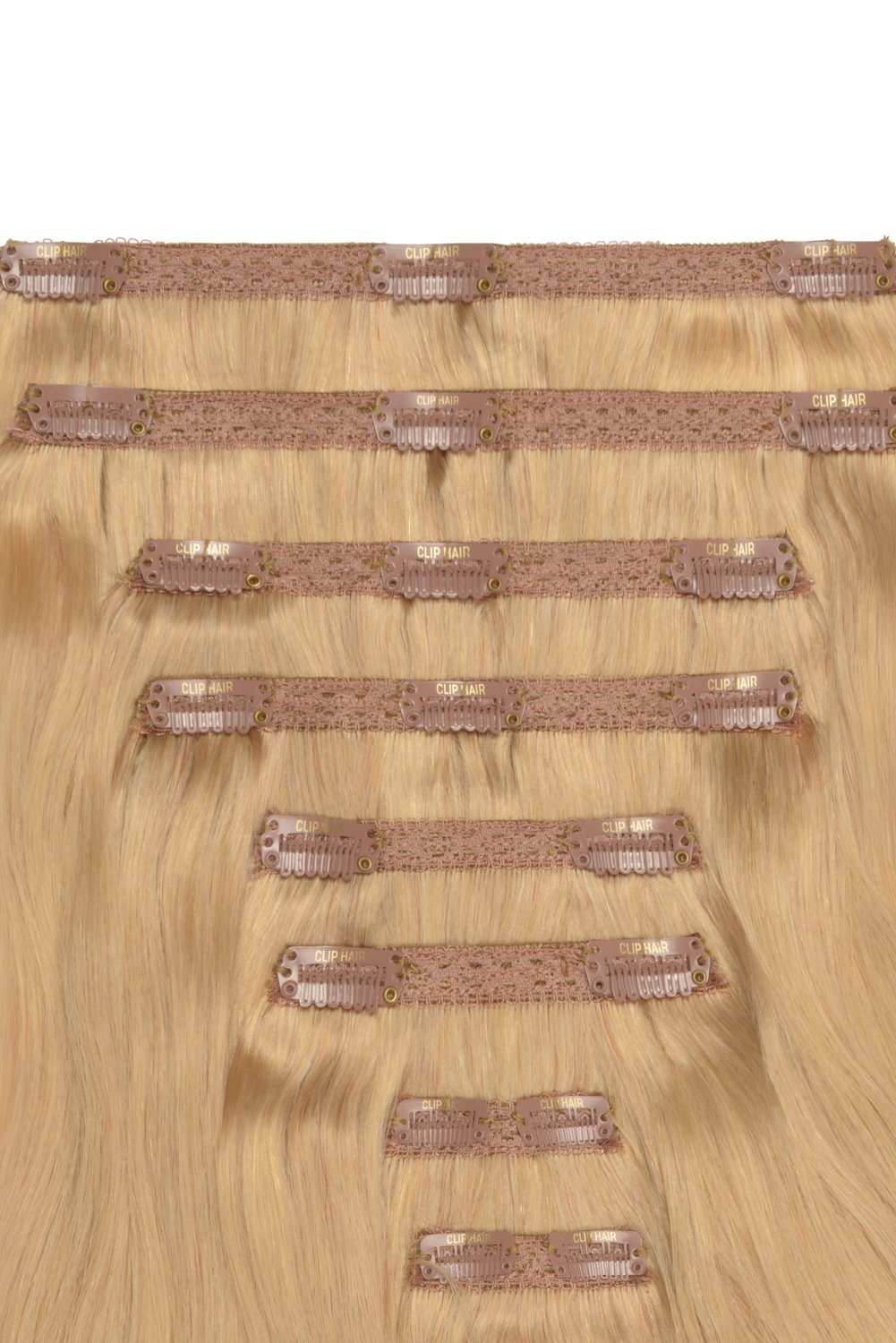 Double Wefted Full Head Remy Clip in Human Hair Extensions - Light Golden Blonde (#16)